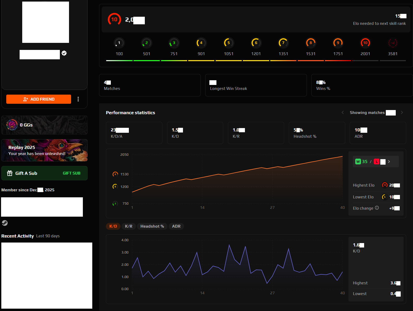 Includes steam and original e-mail details. Prime, White Checkmark (Verified). 40+ Matches, 23 Average Kills, K/D 1.5+, K/R 1.05+, 34 Hours
