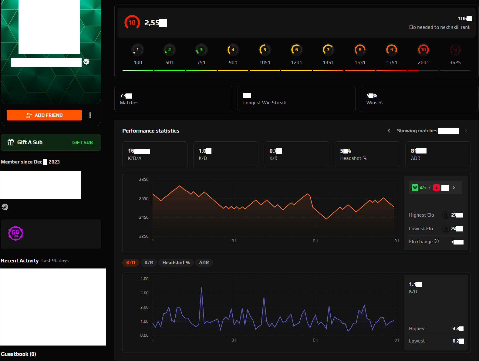 Includes steam and original e-mail details. White Checkmark (Verified). 100+ Matches, 22 Average Kills, K/D 1.5+, K/R 1.0+, 1237 Hours