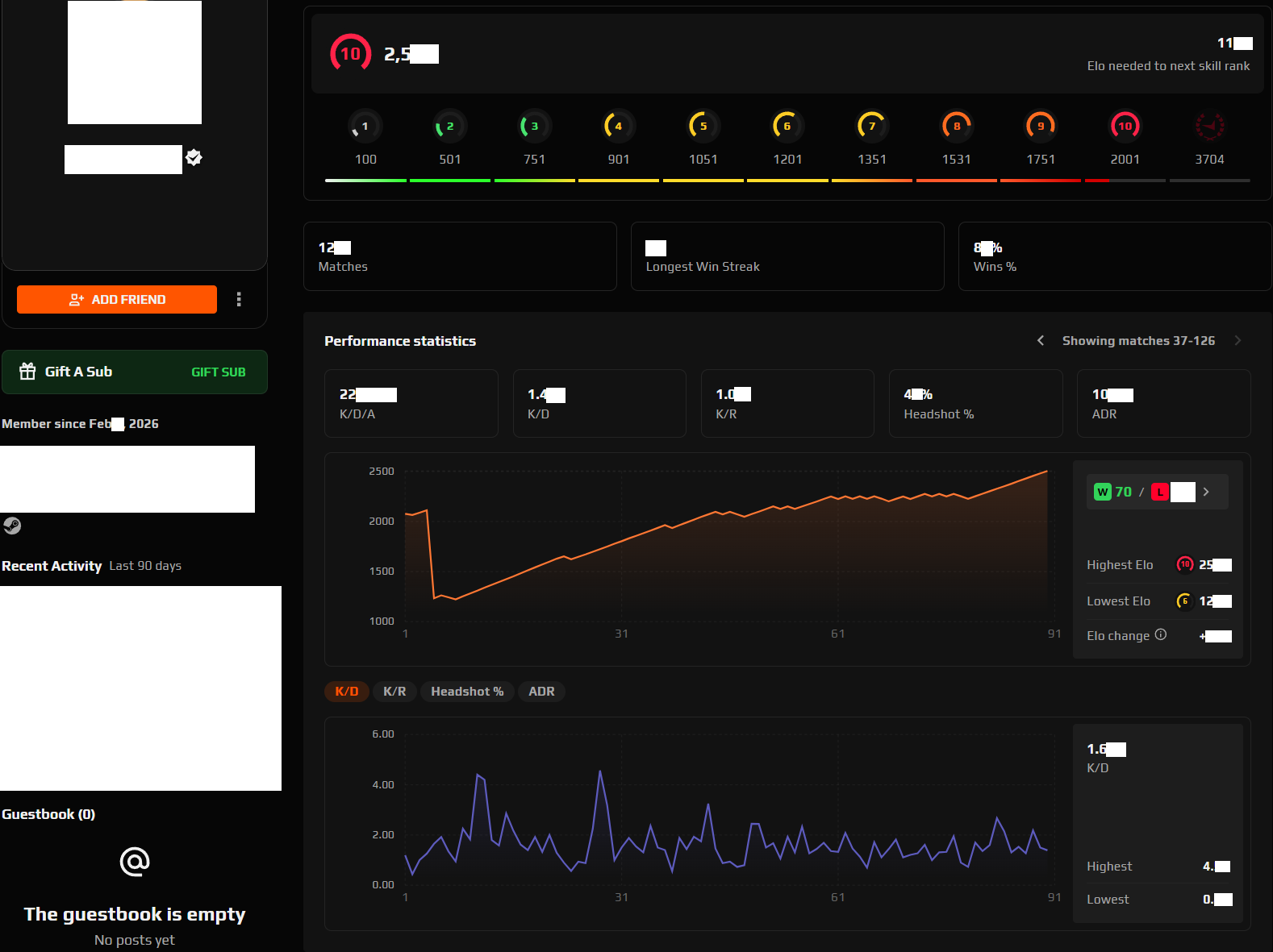 Includes steam and original e-mail details. Prime, White Checkmark (Verified). 125+ Matches, 22 Average Kills, K/D 1.45+, K/R 1.0+, 115 Hours