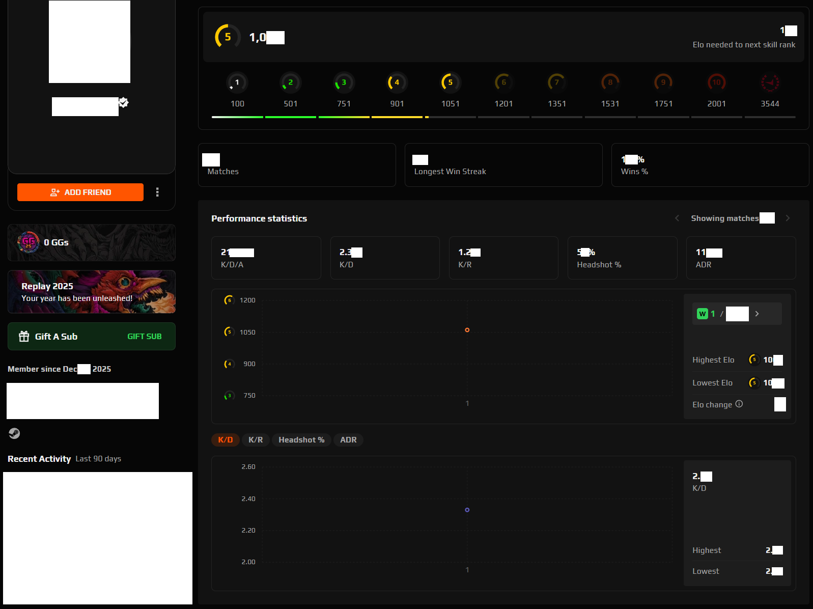Includes steam and original e-mail details. Prime, White Checkmark (Verified). 1+ Matches, 21 Average Kills, K/D 2.3+, K/R 1.2+, 63 Hours