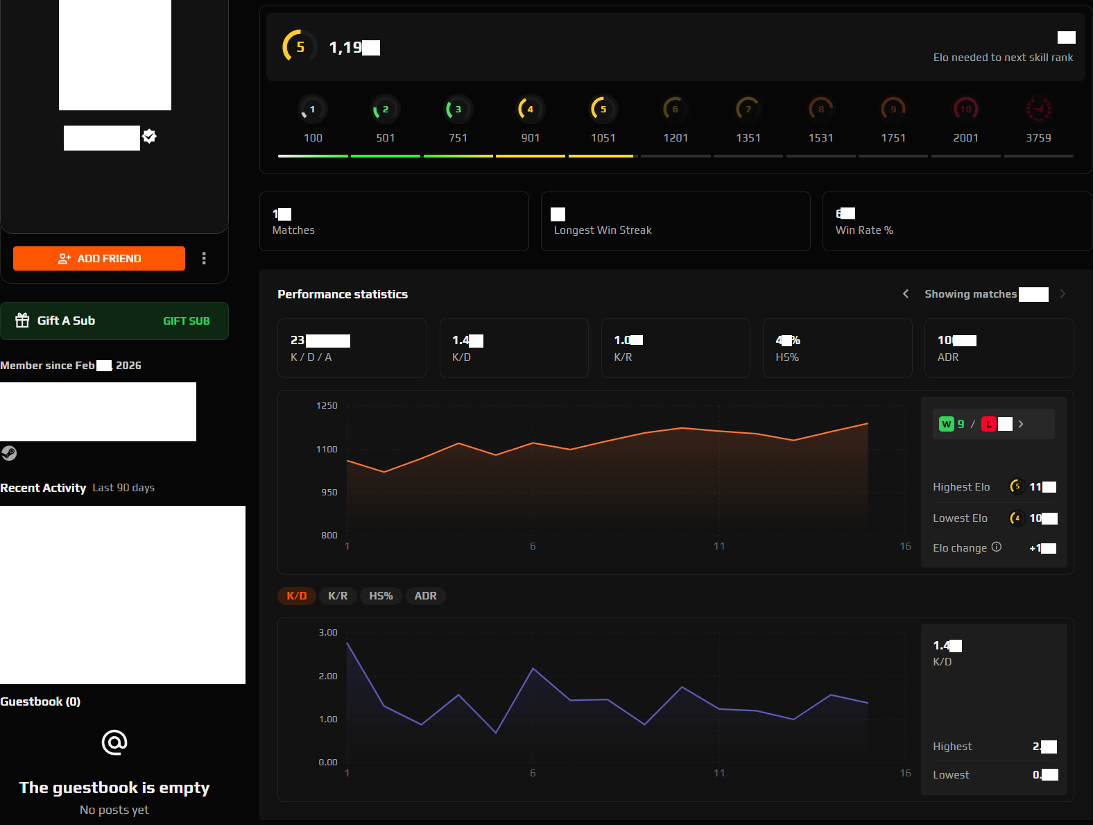 Includes steam and original e-mail details. Prime, White Checkmark (Verified). 15+ Matches, 23 Average Kills, K/D 1.4+, K/R 1.0+, 14 Hours