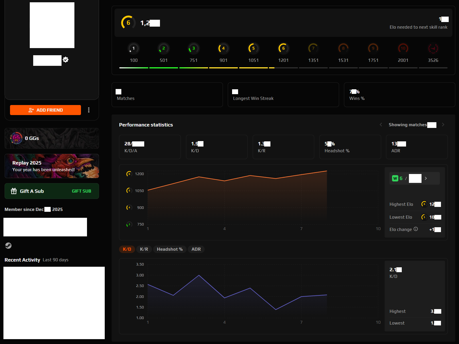 Includes steam and original e-mail details. Prime, White Checkmark (Verified). 5+ Matches, 28 Average Kills, K/D 1.95+, K/R 1.3+, 6 Hours